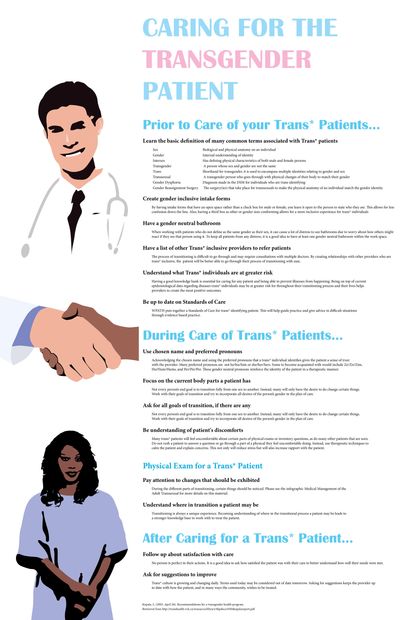 This is a poster created for a med student friend who was going to a conference about transgender care. He handed out this poster to people attending the conference to teach their doctors and nurses.